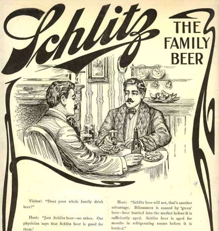 Hopkins, pe de altă parte, a distins-o pe Schlitz, nu prin concurența cu privire la puritatea berii, ci mai degrabă prin sublinierea lungimii procesului prin care fabrica de bere a trecut până să-și producă berea. El a scris despre modul în care berea a fost răcită într-o cameră de sticlă cu platouri în aer filtrat. Cum a fost sterilizat după ce a fost îmbuteliat și sigilat.