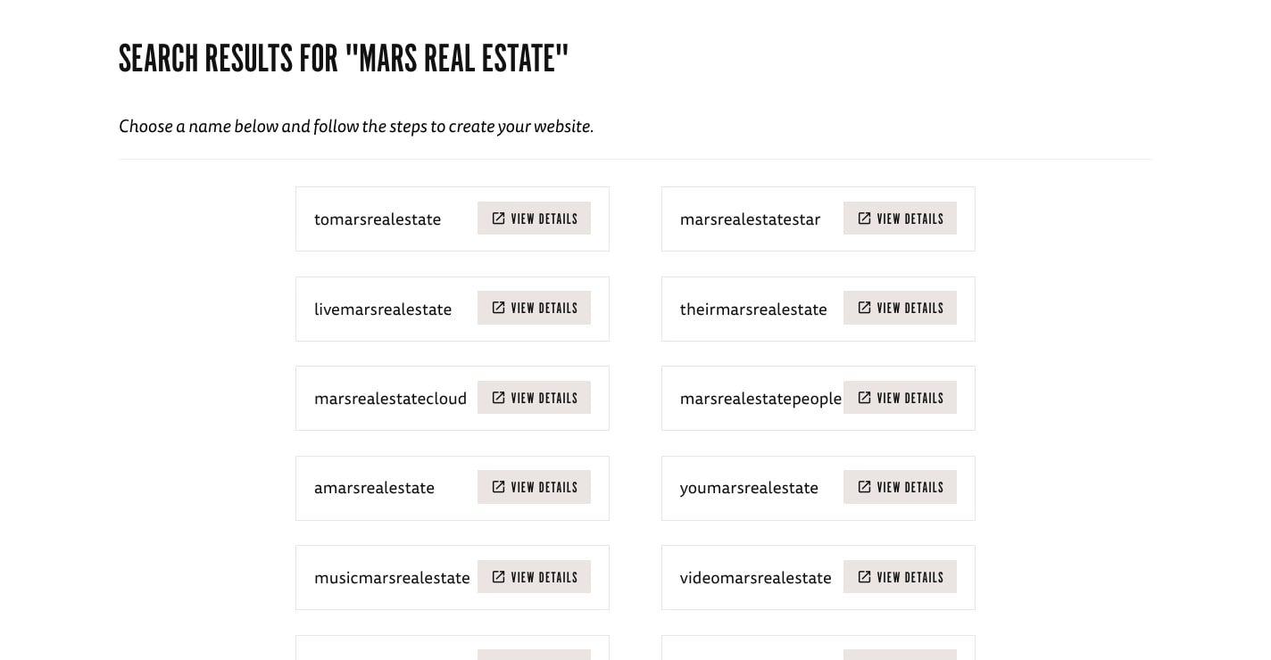 Sunteți un gânditor care dorește să intre pe piața imobiliară în plină expansiune pe Marte în câteva secole? Blog Tyrant produce câteva nume de domenii utile pe care ați putea să le utilizați: