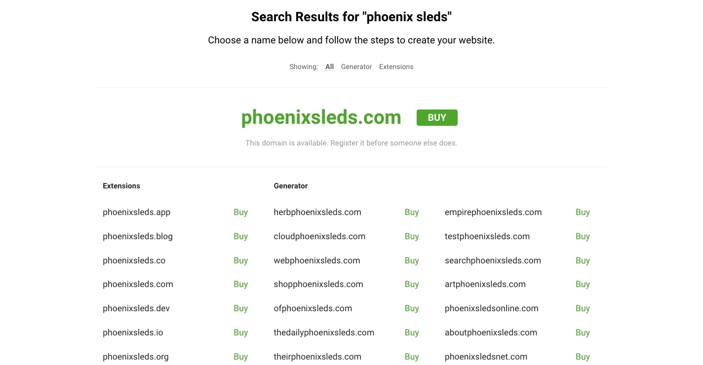 Scopul lui Zyro nu este de a genera variații ale unui nume – vă arată ce este disponibil. Ne place pentru această simplitate. Dacă nu vă deranjează extensiile alternative precum .site, .xyz sau .tech, cel mai probabil veți găsi ceva pe care să îl puteți folosi.