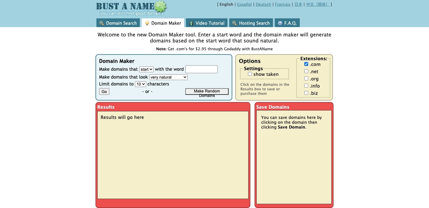Cu o serie de opțiuni de căutare puternice, Bust a Name oferă mai multe moduri de a găsi nume de domenii disponibile.