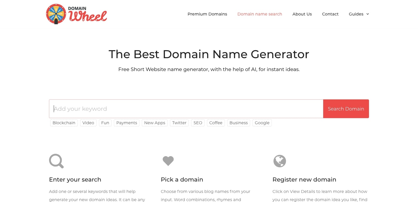DomainWheel se separă de toate celelalte generatoare de nume de domenii cu un instrument ghidat, care oferă rezultate mai inteligente.