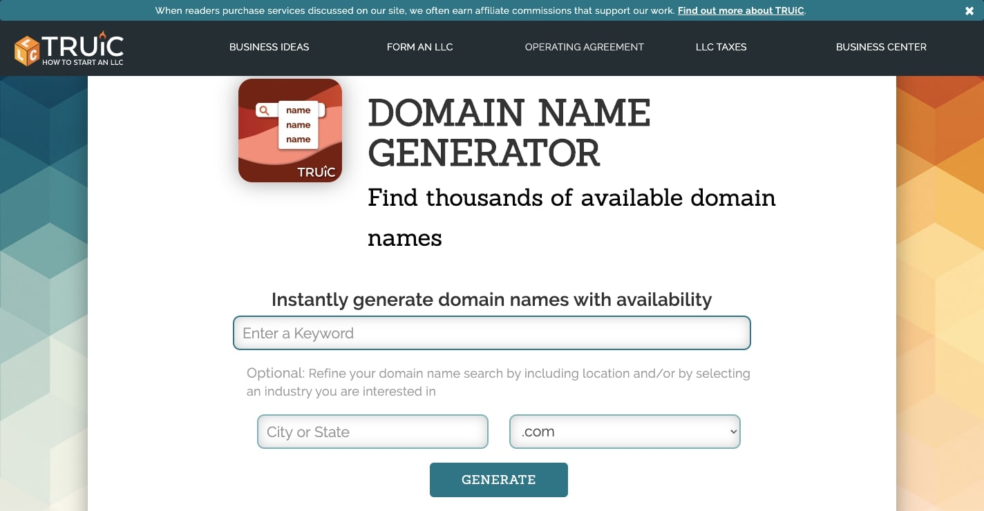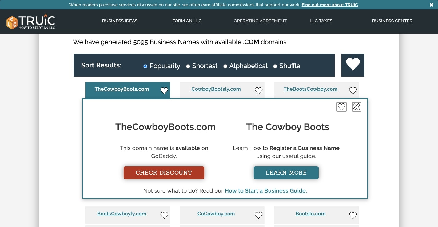 Pe lângă generarea de nume de afaceri și site-uri web, Truic oferă și înregistrarea LLC. Prin aceasta, sunt un ghișeu unic în lansarea unei afaceri proprii.