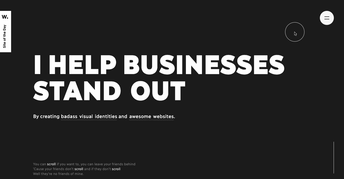 Agency In The Wild combină textul supradimensionat și animațiile declanșate de o mișcare elegantă pentru un site web al unei agenții stelare. Există o mișcare de paralax declanșată de un utilizator nou sub forma unui simbol de adăugare care se schimbă, combinat cu o listă cu cine a lucrat. Unele dintre cele mai bune efecte nu servesc niciunui scop practic, dar fac desenele să iasă în evidență.