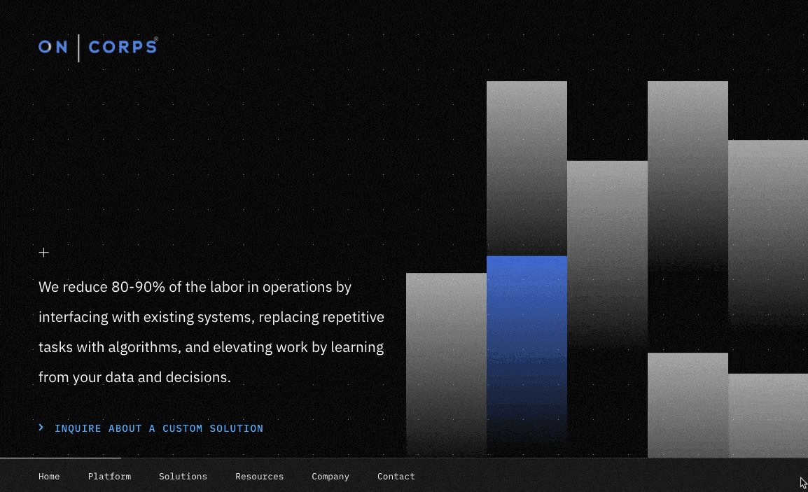 Acest design web care a fost creat pentru compania de analiză a datelor OnCorps, începe cu o diversitate de puncte împrăștiate, care se unesc într-o curbă clopot, reprezentând atât de bine ceea ce fac ei cu datele. Derularea în jos dezvăluie un aspect plin de forme plutitoare, animații și efecte de paralax.