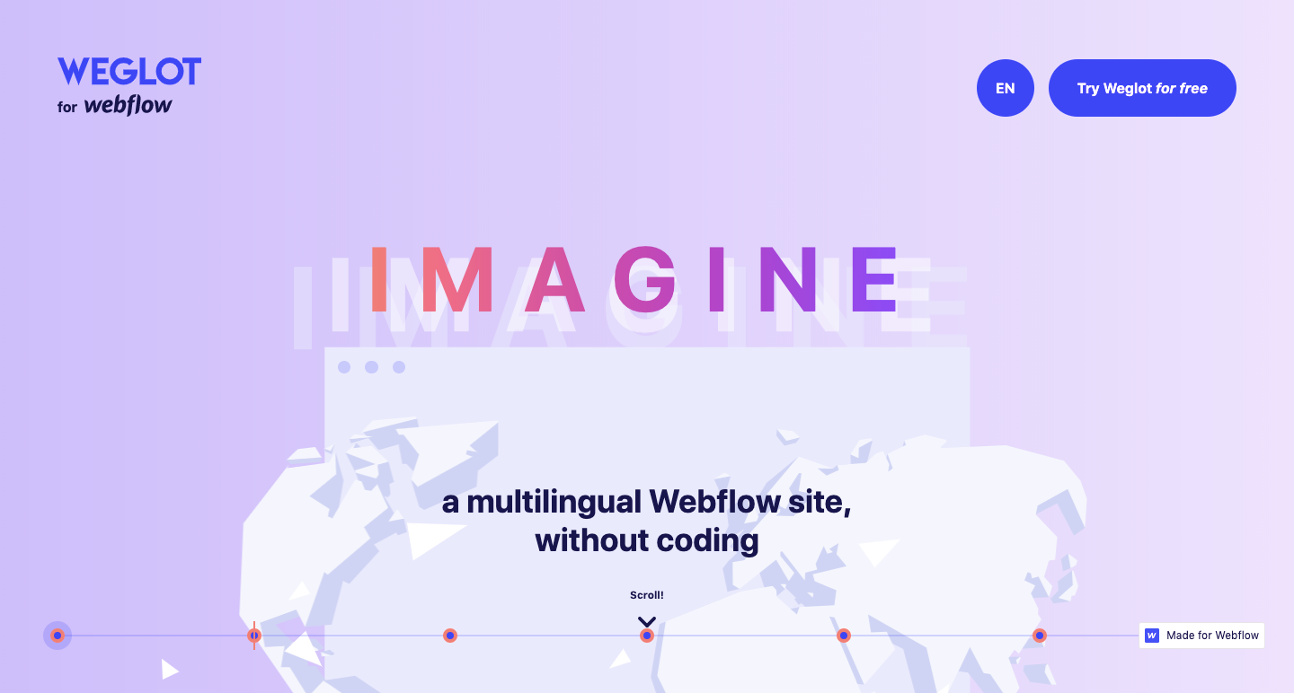 Site-ul web al lui Weglot se deschide cu un glob care se află în mișcare. O mișcare în jos aduce aceste părți împreună. Acest simbolism al modului în care software-ul lor poate aduce clienți străini, care altfel nu ar fi fost la îndemână, surprinde esența a ceea ce face software-ul.