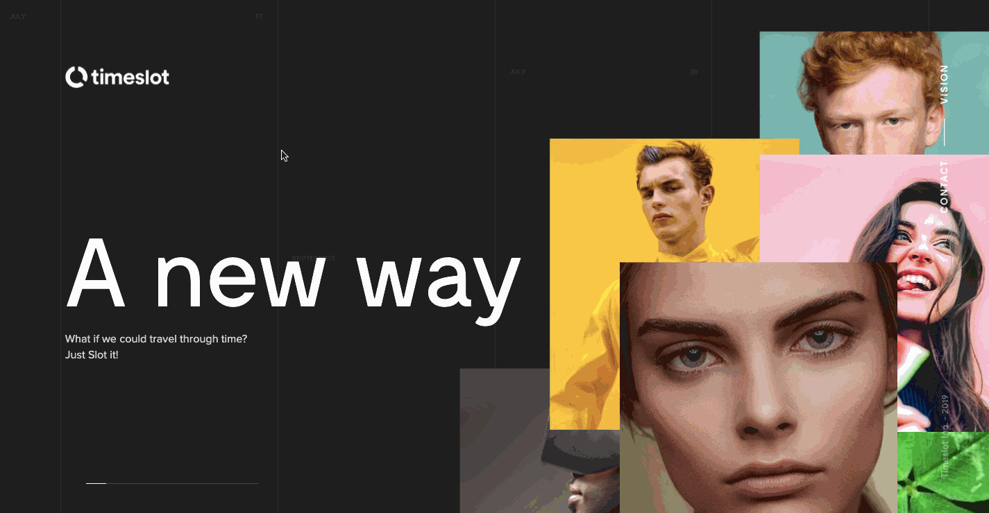 Timeslot folosește efectul de paralax orizontal pentru a spune povestea despre cum funcționează aplicația lor pentru utilizatori. În partea de sus a paginii vedem un teanc stratificat de fotografii ale oamenilor. Pe măsură ce derulați în jos, acești indivizi sunt atrași împreună și aduși pe ecranul unui smartphone. Această imagine puternică reprezintă o metaforă fantastică a ceea ce își propune aplicația lor pentru a conecta oamenii.