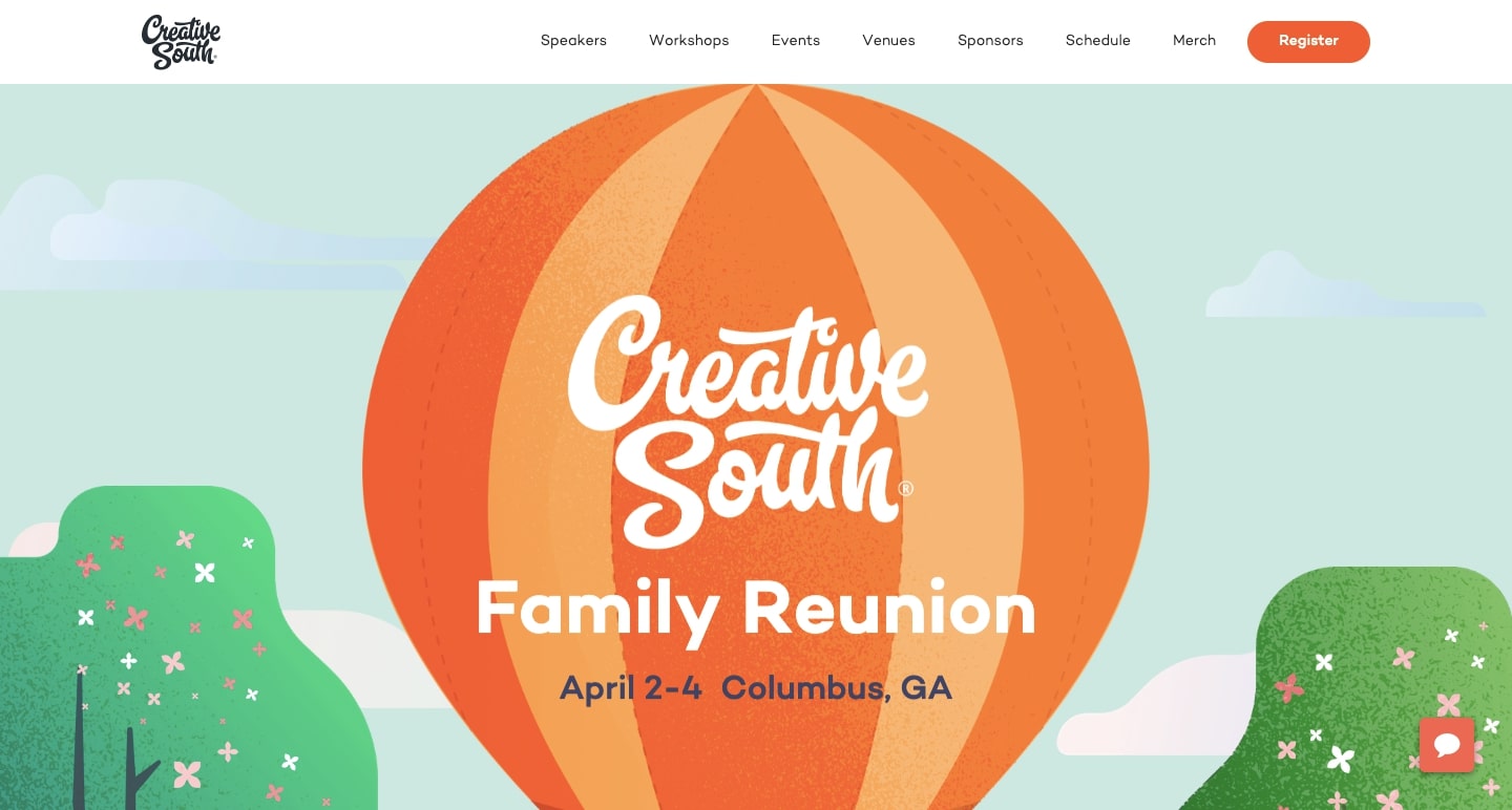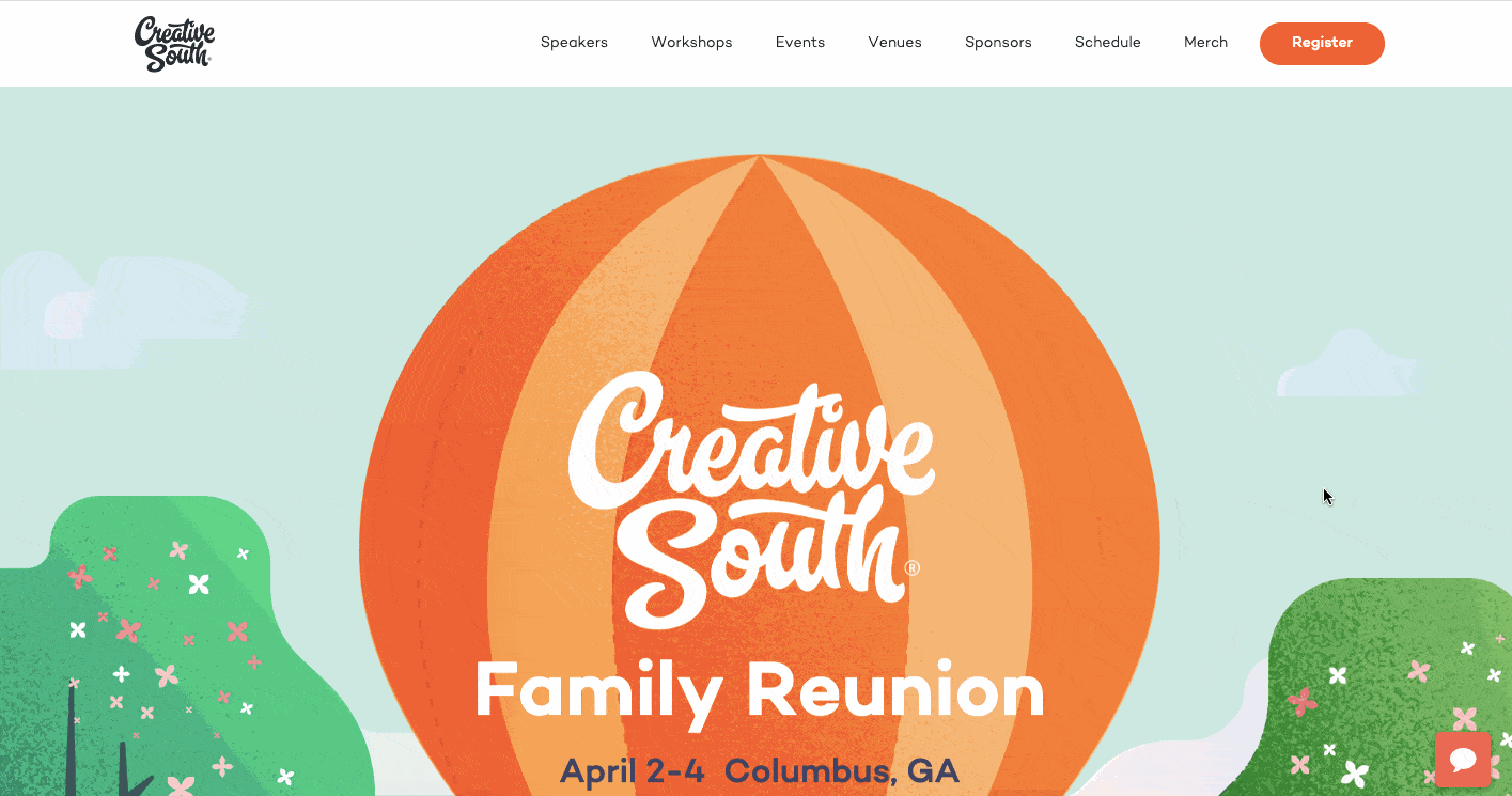 Creative South, o conferință de design din Columbus, Georgia, organizează un eveniment cu o listă impresionantă de vorbitori și ateliere pentru creatori. Acest site web, cu ilustrațiile sale ciudate și texturile organice, surprinde spiritul conferinței lor. Derulând, există o serie de efecte de paralax, mișcând elementele peisajului colorat care alcătuiesc acest design.