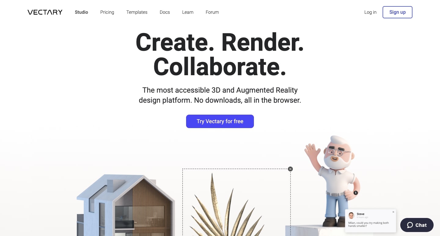 Vectary oferă o platformă pentru crearea de imagini AR și 3D. Totul, de la personaje de desene animate la reprezentări fotorealiste de produse, este posibil cu software-ul lor. Există o mulțime de grafică în stil 3D care ocupă acest aspect.