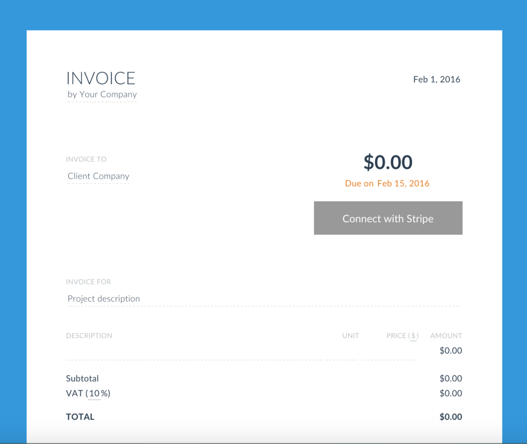 Invoice.to poate fi destul de nou în jocul de facturi, dar este un generator de facturi incredibil de ușor de utilizat. Acesta poate fi conectat la contul Stripe pentru a încasa plăți. Dacă utilizați deja aplicația Stripe, Invoice.to este aplicația perfectă pentru dumneavoastră deoarece este un instrument de facturare simplu și bine conceput..