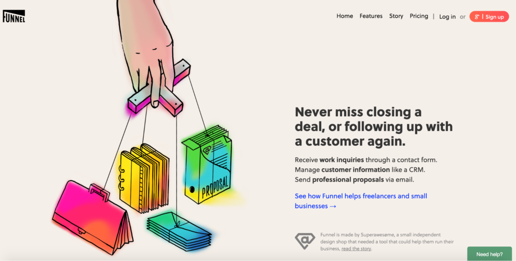 Un alt instrument hibrid care s-ar putea încadra în mai multe categorii. Funnel vă permite să adăugați cu ușurință formulare pe site-ul dvs. pentru a colecta informații de la clienții potențiali. Odată ce primiți o întrebare, Funnel vă permite să creați o propunere de contract și să vă puneți proiectul în mișcare.