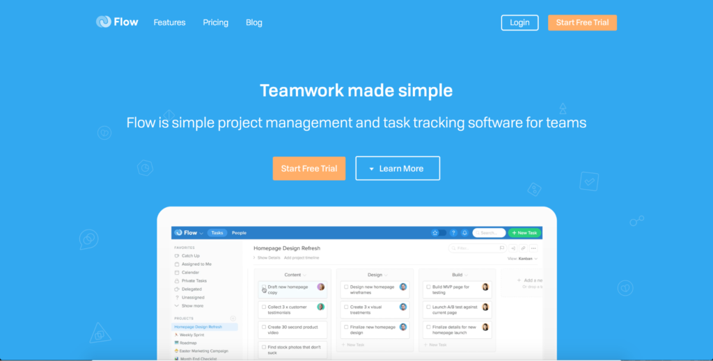 Flow combină managementul de proiect și chat-ul într-o aplicație pentru mai multe dispozitive. Acesta este un instrument mult mai simplu decât alte instrumente de management de proiect din această listă. El are funcțiile necesare fără prea multe lucruri în plus care să îngreuneze utilizarea sa.