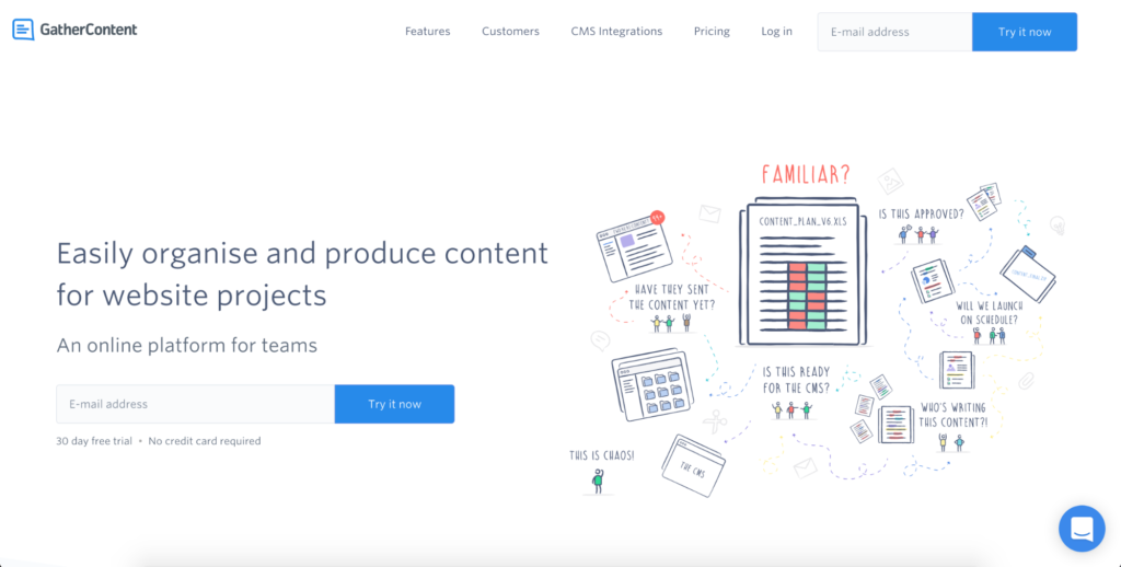 Dacă vreun instrument a fost creat special pentru strategii de conținut, acesta este GatherContent. După cum sugerează și numele, este conceput pentru a vă ajuta să gestionați cu ușurință conținutului dintr-o varietate de surse. Vă permite să-l aliniați cu CMS-ul dvs. și să construiți un sitemap și un inventar de conținut. În plus, oferă opțiunea de a-l integra cu alte CMS-uri populare pentru a simplifica publicarea.