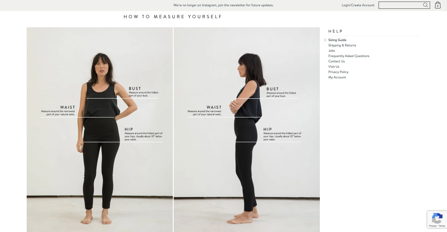 Conținut suplimentar, cum ar fi acest ghid de mărimi de la brandul de modă Elizabeth Suzann, îi ajută pe clienți în procesul de cumpărare, oferindu-le ceea ce au nevoie pentru a lua o decizie informată.
