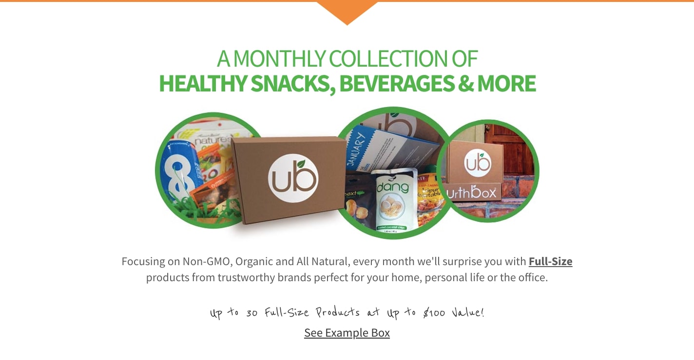 UrthBox, un serviciu de abonament pentru cutii de alimente care oferă o recompensă de gustări sănătoase, face acest lucru bine pe pagina lor de destinație.